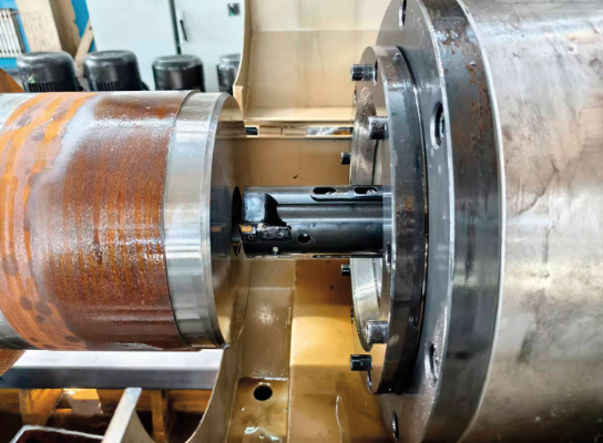 Подача забезпечується сервомотором 4,5 кВт через черв'ячну передачу – точна та стабільна передача зусилля. Швидкий рух, надійна фіксація. Розточувальний брус – з незалежним приводом, діапазон 40–500 об/хв. - Затискний патрон